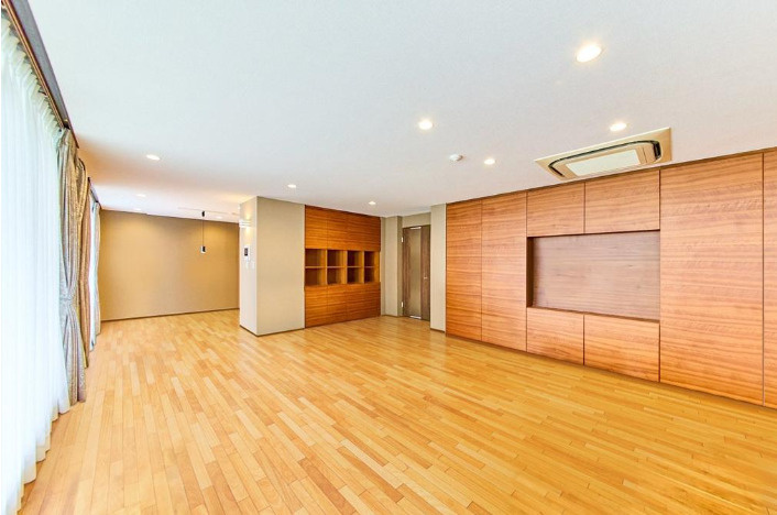 ユニットバスやシステムキッチン、洗面化粧台、トイレの交換をはじめ、サニタリールームの新設、クロス全室張替、無垢材フローリングへの張替、各種収納の新設、ビルトインエアコンや建具の交換など、住まい全体を一新しています。